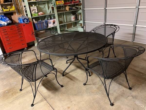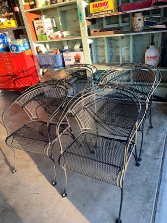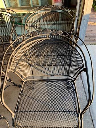 54" round table with 4 chairs in excellent condition! Wrought Iron Chairs: 31” height 26.5” wide Very sturdy, High quality . This set has plenty of seating , so it's perfect for outdoor family...