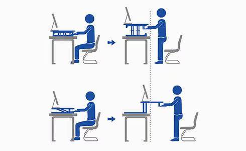 It takes little effort to transition from sitting to standing — even with the maximum 35 lbs desktop load. Just lightly squeeze the side hand bars and lift using only 13 lbs of force. Lowering requires just 3 lbs of force.