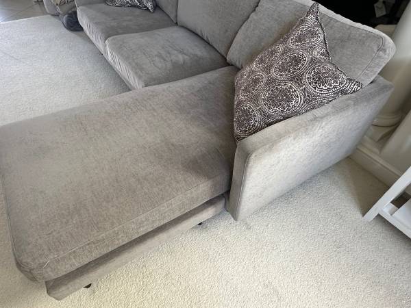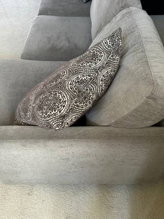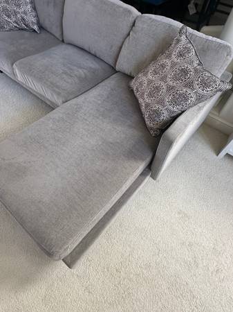 Excellent condition. Used for less than a year. No damage stains, tears, etc. The couch measures 34” deep, 25” tall without pillows, 35” with pillows and the total length is 96”. The lounger portion...