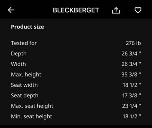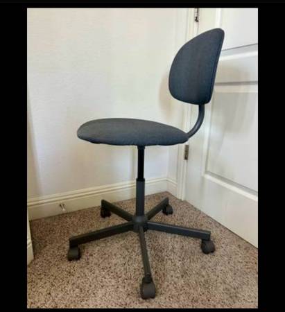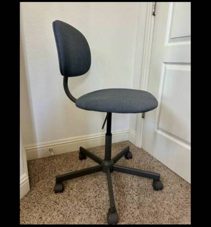 Gray Bleckberget office chair for sale. Swivels and has an adjustable seat. It has no armrests so it’s easy to store when not in use. The backrest and seat are padded and quite comfortable to sit in and the casters have a specific type of brake that keeps the chair from rolling when you get up. MSRP $80. Works like new, have only used it for a few months to finish school.