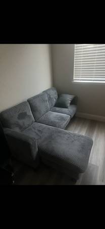Small sectional like new dark blue cooler $159. 4 chairs with tables .$150. Good condition large loveseat and couches $150. Wood frame bed with clean mattress very clean.$100. $ 30 coffee table And much more items. Moving sales. Rancho Cordova capital village