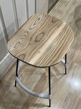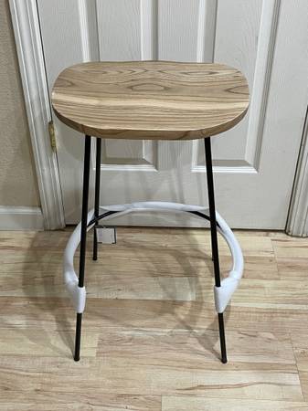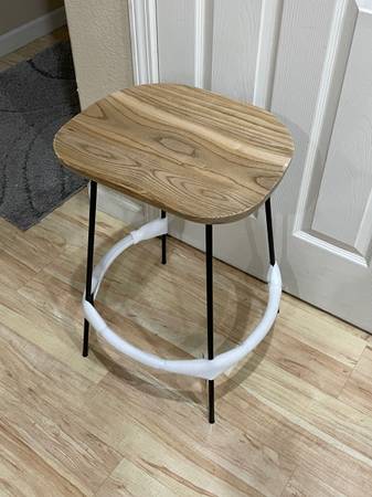 Brand New. Just removed from the box and assembled. The seat height is 24 inches. The seat measures 16” x 14”. Zzyzx