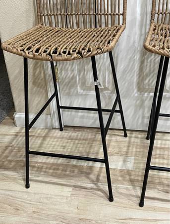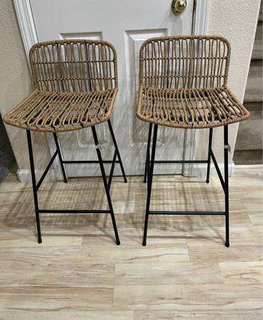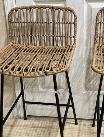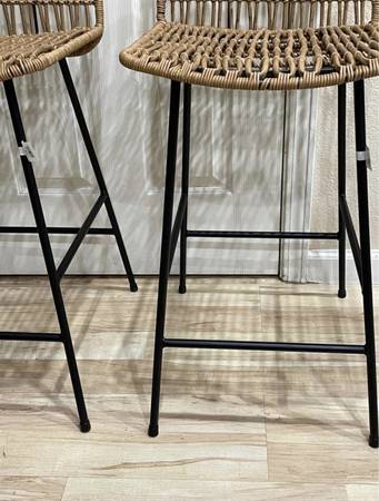 New Set of 2 Low Back Counter Height Bar Stools Black Metal Indoor or Outdoor Patio Furniture. Brand New. Just removed from the box and assembled. The total height is 34 inches and the seat height...