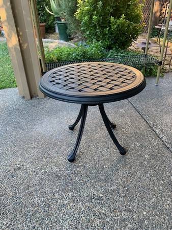 Outdoor cast aluminum side table in great condition Measure : 22" x 18" Firm on price, cash only It's available if you see ad up