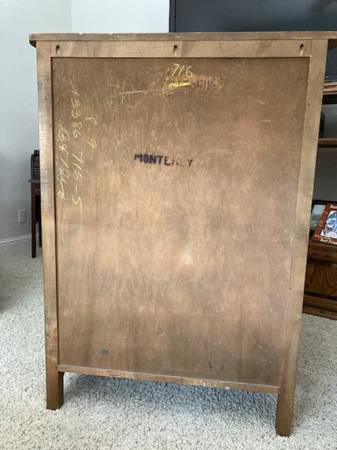 Floral designs and Hardware are perfect. The backside has the original manufacturers Monterey marking.