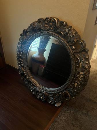 Large mirror 45X45 inches, Bombay Co. Ornate Carved Round Beveled Mirror, in great condition no damage.