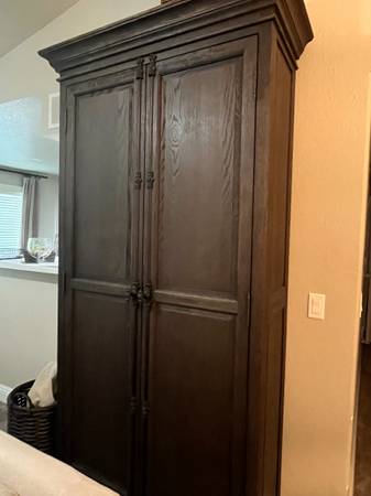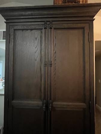 Details Crafted of oak with fine veneers. French doors secure with a full-length crémone casement. Black Oak Drifted, Brown Oak Drifted and Aged Oak finishes feature Distressed Black Bronze hardware; Weathered Oak Drifted finish features Black hardware; Distressed Grey finish features Pewter hardware. Doors and side feature a molded panel design.