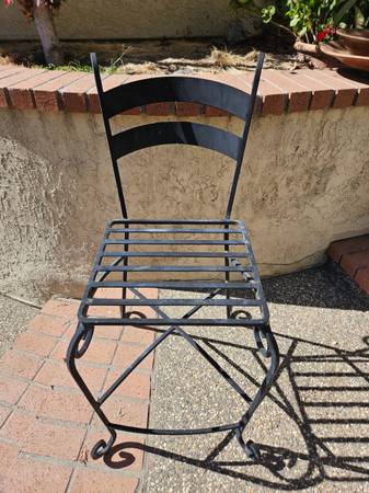 I have a single wrought iron chair for sale. Used outdoors and shows some weathering. I have a cushion that fits it, but was not originally made for it. The cushion is in good condition (no rips or stains). Dimensions are below. I am asking $40 OBO. Thanks!