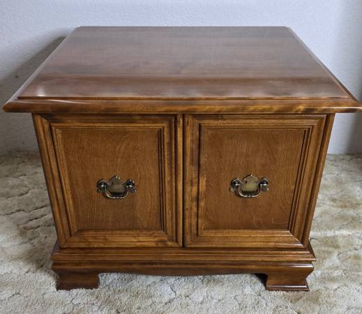 For sale is a stunning vintage Ethan Allen Heirloom Chippendale square commode/side table model number 10-8635 in a warm Nutmeg Maple finish 211. This classic piece showcases Ethan Allenās signature craftsmanship and timeless design, perfect for traditional or colonial-style interiors.