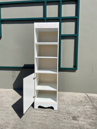 This shelf is in excellent working condition. Is made from wood and pressed board. W18 L27 H67”. It has light scratches or normal wear.