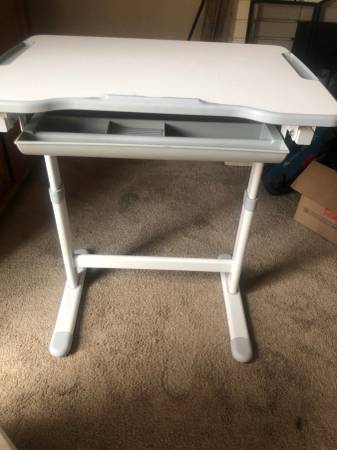 This desk is adjustable and has a storage drawer.