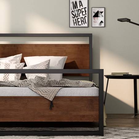 - MODERN INDUSTRIAL MAGNIFICENCE - Black metal frame boasts clean lines and modern design that’s accented beautifully with wood headboard and footboard.