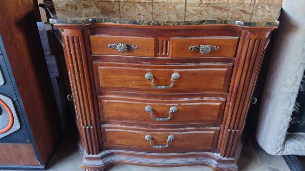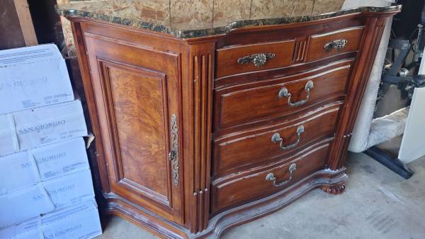 Nice dresser with removable granite top, 53 long, 18 wide, 36 high. Also a 64"x38" table $200 obo 4449778 area code 530