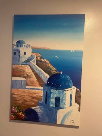 Purchased in Mykonos and professionally stretched on frame. Size 23x36
