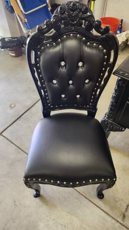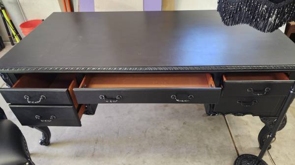 High end solid wood black office desk with ornate office chair ! 750 desk,200 chair Can deliver if local! Call 916-997-383seven