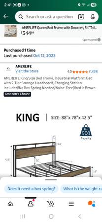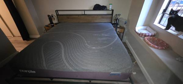 Selling a **high-quality King bedroom set** in excellent condition — includes the **Purple RestorePremier Cool Touch King Mattress** and the **AMERLIFE Industrial Platform Bed Frame**. Both are like new, clean, and extremely comfortable.