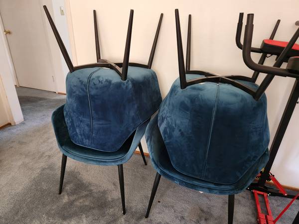 Just moved and we no longer need these chairs. In LIKE NEW condition. Kept in our storage unit. NO FOUL ODORS AND COMES FROM A PET FREE HOME. Color is Teal. Paid close to $300 a piece! What was I thinking? Oh well, they are yours for over half that! I just want to find a good home as they donβt fit our farmhouse style. Wife will be happy.