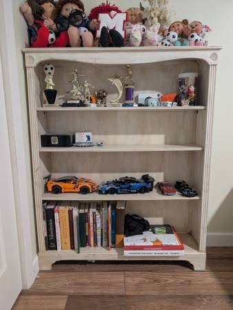 The book shelf and vanity are not original to the set, but refinished to match. I believe the vanity is much older and has a matching chair.