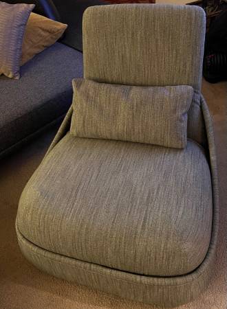 Lounge convertible converts from a lounge to an extended low lounge with attached ottoman using pull tab