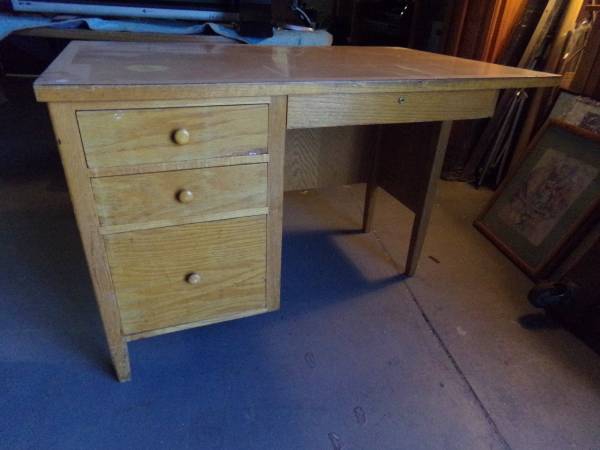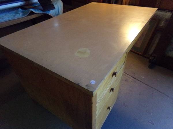 Beautiful Vintage Solid Wooden Desk with drawers for sale. Previously owned. Good condition. Laminated top has minor wear on it. Please see pictures attached. Size: 48"W x 30"D x 29 1/2"H. Our Ref: Q. Price $50 Firm. If interested, please call or text is fine.