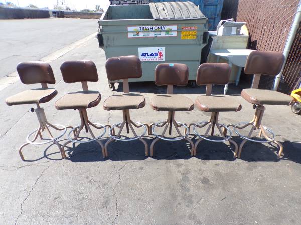 Vintage Stool w/ Foot ring and Backrest (Ref: F82) for sale. USED. Stool with adjustable back rest and foot ring. Color- Brown. Seat is good. Backrest adjust and seat height adjust. Price $35 each. Our ref: F82. If interested, please call or email.