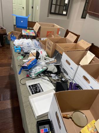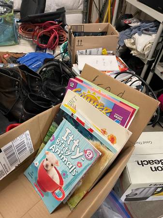 Lots of Kids stuff, tools, art, Toys, and a whole garage full of everything.