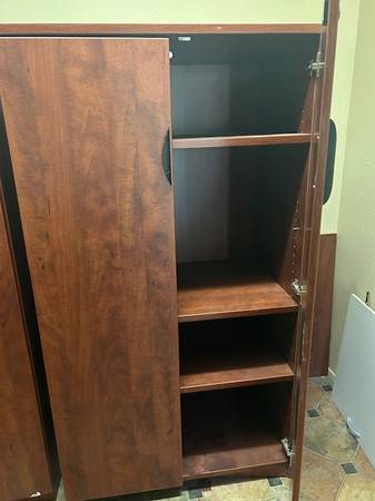 Office furniture ($ 5- $100), electronics, 15 channel audio mixer, wine racks, dog kennels & supplies, Christmas decorations and much more.