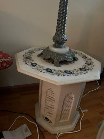 Antiques Household Wood Dining room table with four chairs Antique purses End tables Books Printer Art Prints Crystal vases wooden Knickknac table Marble table from Viet Nam