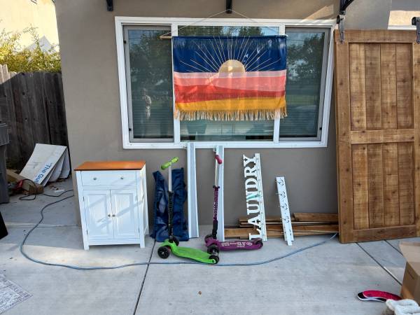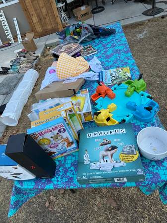 Yard sale until 12 or 1 at 5281 M Street near east portal park! Futon, barn door and hardware, big mirrror, stuffies, games, books, hats, bags, and more!