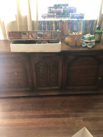 Yard sale inside house Moving sale Items for sale: Hutch Old 9drawer dresser Chanel boots Paul Green Ankle boots Jill Sanders skirt new with tags Moreno Design skirt VCR tapes Table with 6 chairs...