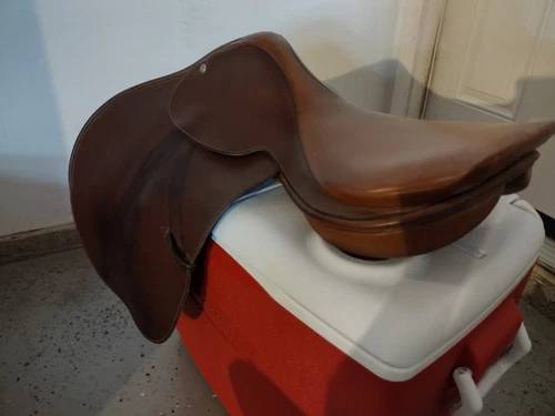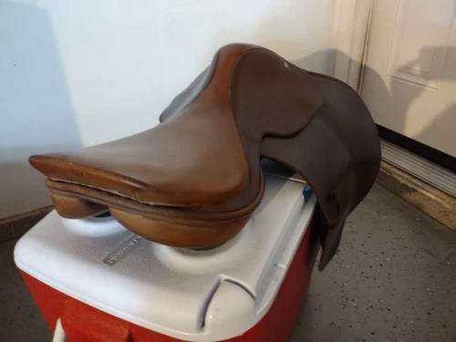 DG Stackhouse Horse Saddle 17 inch English 5 inch Tree Good Shape. This is a Close Contact Jumping Saddle. Vintage from the mid to late 1980's.