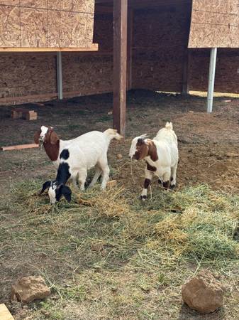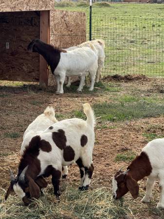 For sale: male and female Boer goats. All are 5 months to 8 months , healthy, friendly, and gentle. Great temperament and easy to handle. Prices range from $240-280 .please text me or call me show contact info