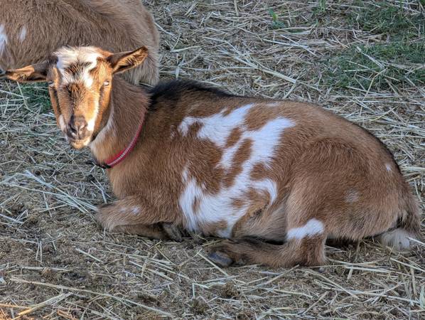 Offering up an ADGA registered Nigerian dwarf doe who has been bred to my *B buck. The doe is almost 2 years old and this will be her first freshening. She's also blue eyed and has a handful of small moon spots, so her kids have a chance of blue eyes and moon spots too. Confirmed pregnant, due March 7th, and she'll come with her papers and a service memo so the kids can be registered.