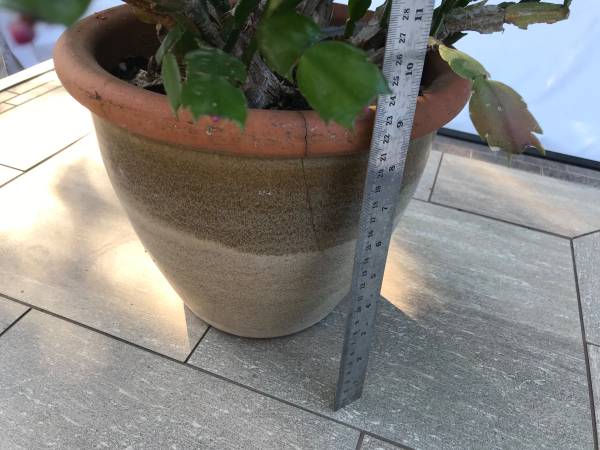 The pot is a nice pot except there’s a hairline crack (see picture with ruler). It won’t break though.