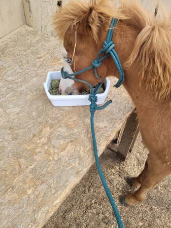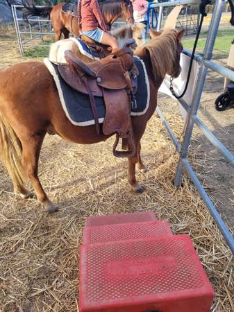 Looking for a new home for my pony he's a sorrel gelding and has been in my pony ride business He's 11H tall. Young 3 yrs Nice pony he rides hes saddle broke halter broke, lead line broke trailer broke lefts feet for Ferrier can get honery 100%KID SAFE PONY had cart pulled before. Carousel lead line pony lessons hes done it all he actually just worked in my harvest festival. Good with horses goats cows sheep everything I'd like to find him a forever good home as a pet .. rides grandkids weekend pony bday parties friend type pony or for another horse friend. Up to date on everything including feet trim 209 2 five seven 8 3 three 2