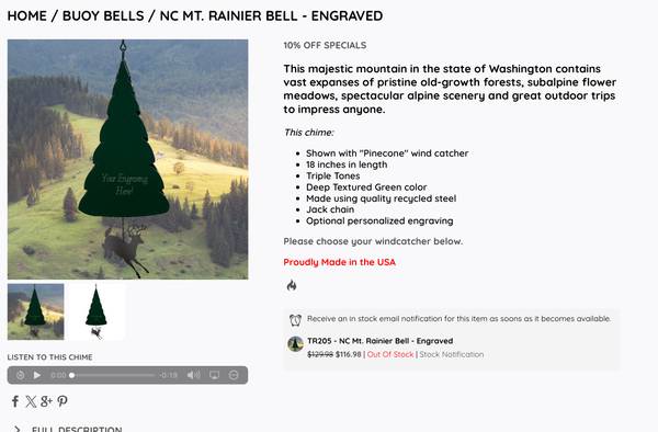 They are made in the USA. These steel wind bells are made of steel with weather resistant powder-coated durable finish that resemble the forest in Mt Rainier. It plays 3 rich tones.
