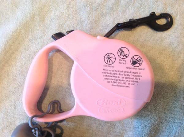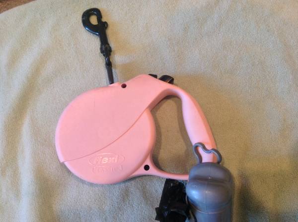 Great condition pink flexi retractable leash - for medium and small dogs - $5 Yellow/black lead - leash - $5 Blue leashes for dogs or horses. One 7 feet long. One 5 feet long. 7/16" thick nylon...