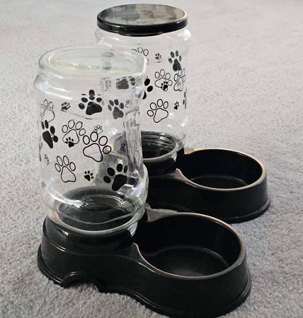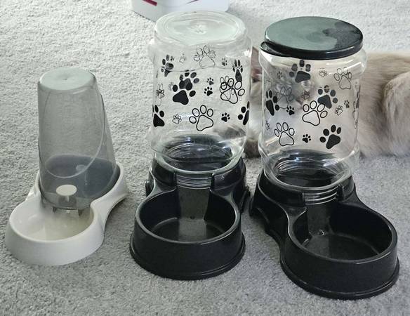 Large Feeder and Waterer in good working condition. Comparison with a smaller waterer and 12 lb. adult cat are shown in the last images. Please include your phone # for texting with your email. No...
