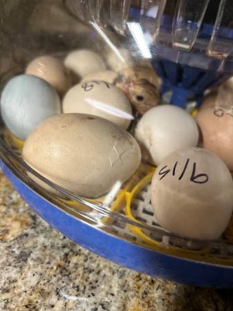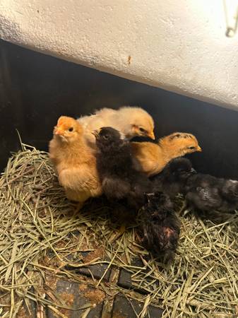 I have 9 baby chicks 2 weeks old in different colors , brown , black and yellow Active and happy chicks ready to go to a new home or farm These chicks came from brown hens that lay brown and white...