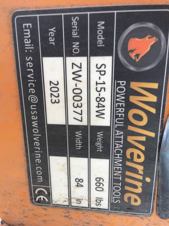 Wolverine 82" Skid Steer Snow Plow, $2500, Unused, New.