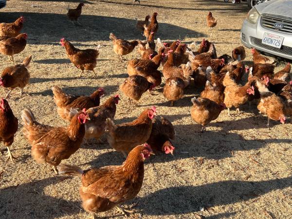 Hello we have egg laying Hens available! They are free range Hens laying big Brown eggs 🥚🍳 If you are interested in Egg laying Hens please give me a call 510-274-985zero