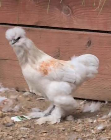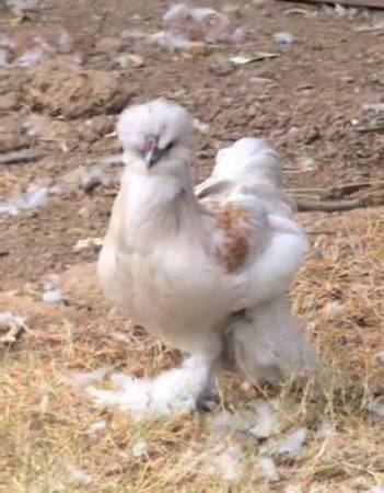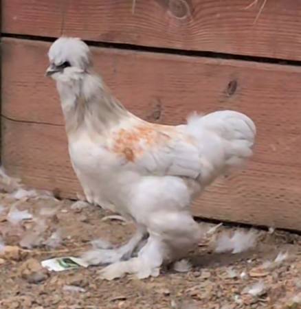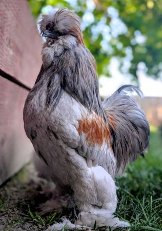 This is Uno. He is a 4 month old silkie/satin cockerel. He is very friendly and absolutely gorgeous. I have included a picture of his father to show what he will likely mature into. He is looking for a flock to care for. $10 obo, more interested in giving him a good home.