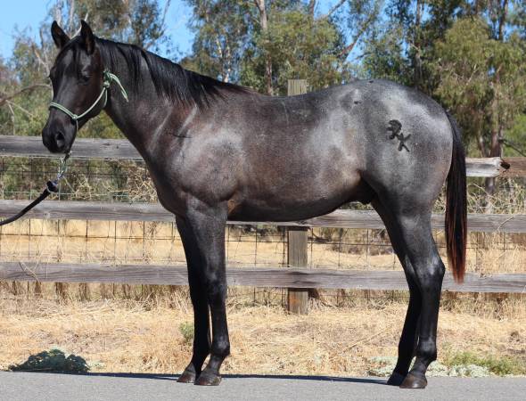 2024 AQHA Blue Roan gelding with pedigree containing 25% Blue Valentine and 10% Hancock