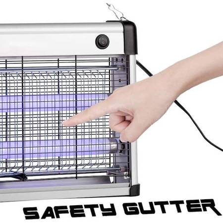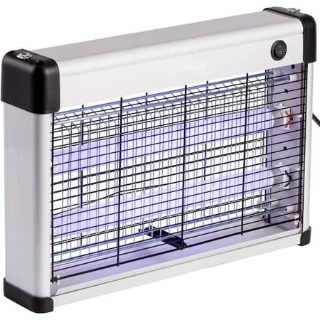 It utilizes UV light bulbs (e.g., dual 10W T8 bulbs) to attract flying insects.