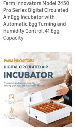 Farm Innovators Model 2450 Pro Series Diaital Circulated Air Egg Incubator with Automatic Egg Turning and Humidity Control, 41 Egg Capacity I paid $129 we'll take $60 OBO