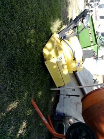 This tractor has all way been stored inside shop service all up to date " blades sharpen,& greased New battery, the tractor has only 15 hours total tires are great has roto tiller attachment and a spray tank with a John Deere trailer #15 that I ,ll threw in with the tractor I will Update picture