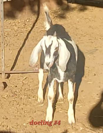 We have a pure Nubian goat, a young doeling, we also have a yearling doe that is Nigerian Dwarf/Nubian cross that very well could be pregnant.