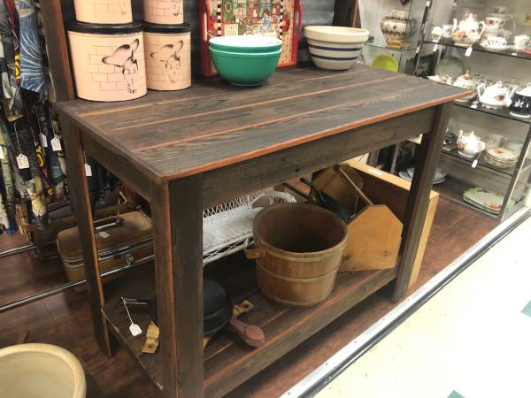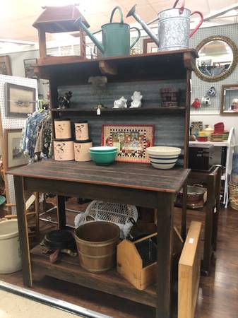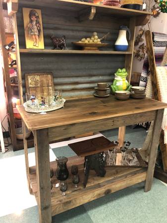 My husband makes these potting tables and one just like these is available at Stardust Vintage Emporium on October 23rd. If interested please go to the store and ask to see the shops that belong to dealer 69VS. The potting table is 5 1/2 feet tall, 4 feet wide, and 24 inches deep. We do deliver to the Sacramento and the Roseville area for $45, but you need to contact me first for details. If you live close to the store it would cost less to deliver. Please bring an abled-bodied person with you to help load the potting table just in case there is not that much "muscle" on duty. The store is located at 9580 Micron Avenue in Sacramento and is open Thursday through Monday from 11:00 a.m. until 7:00 p.m. and is closed on Tuesday and Wednesday. Credit cards accepted, even over the phone. Bring a friend and browse the aisles!