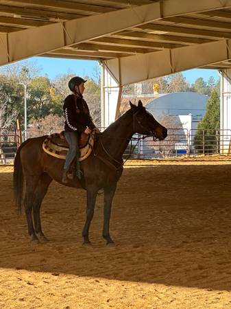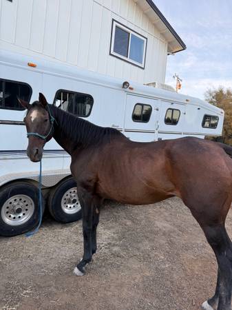 Of the track thoroughbred for sale. Dessie is a 17h mare OTTB, she is 17 years old. She has been ridden both western and english. She is great with kids, she loves water, trails, she is great with ropes. She would make an amazing trail/lesson horse. Or for whatever you want to do. She is amazing with the trailer, no issues, ties, stands, hobbles. Dessie has jumped 4ft (120cm) The only problem that I have with her is that she has trouble gaining weight. She is also almost fully bombproof except for one thing dogs are her only weakness, she is used to my dogs by now but new dogs she gets a little spooky on, but other then that she bombproof.