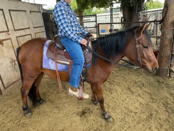 Rosebud has had roughly 6 months training in total. Going on 4 months consecutively and 2 months prior nonconsecutive. Kids have ridden her with supervision, she trailers, opens and closes gates, ties, lunges, picks up feet, takes the bit. Has crossed small areas of water. Exposed to chickens, dogs, goats, and cattle.